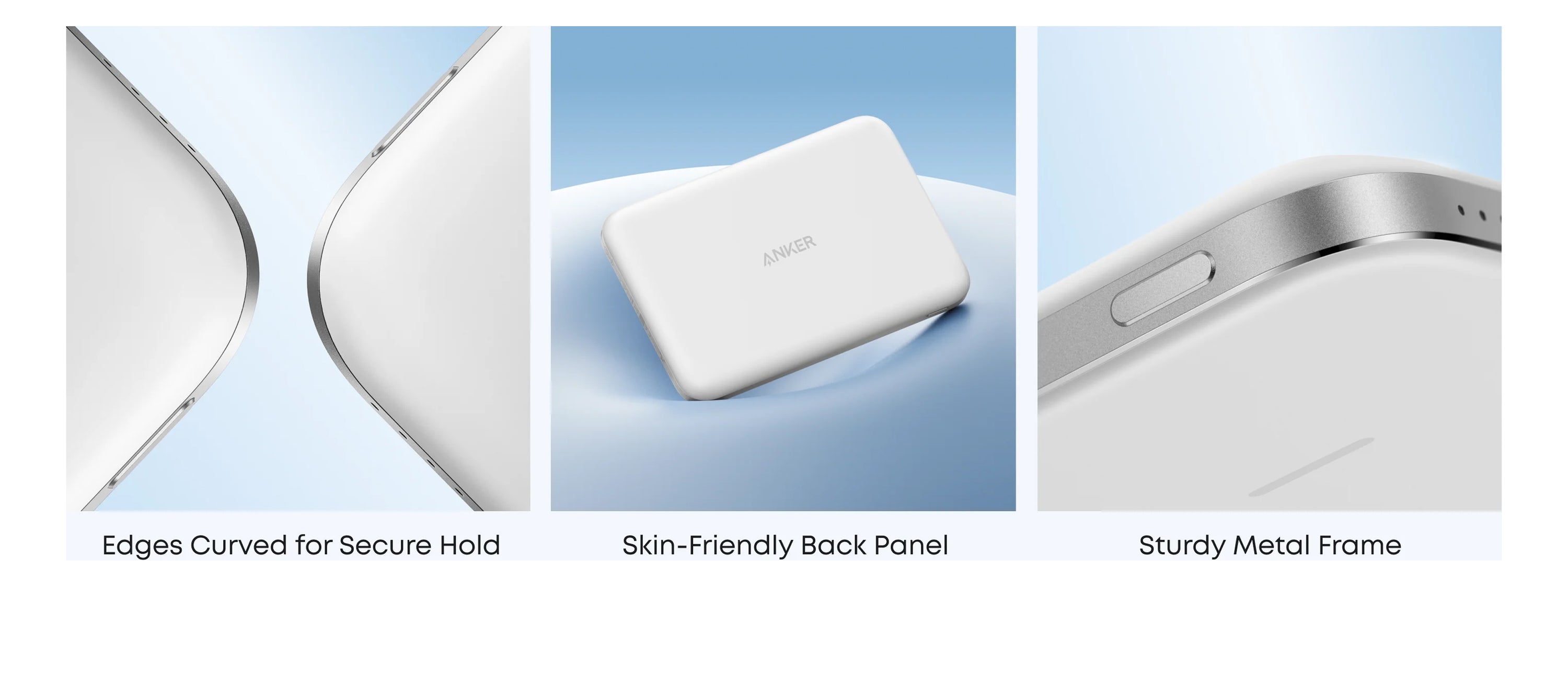 Comfort-first design: Curved edges, skin-friendly back panel, and a cool-touch metal frame.