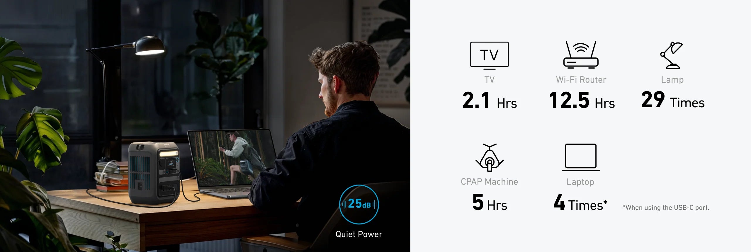 Whisper-quiet operation: Runs at just 25dB for peaceful use indoors or outdoors.
