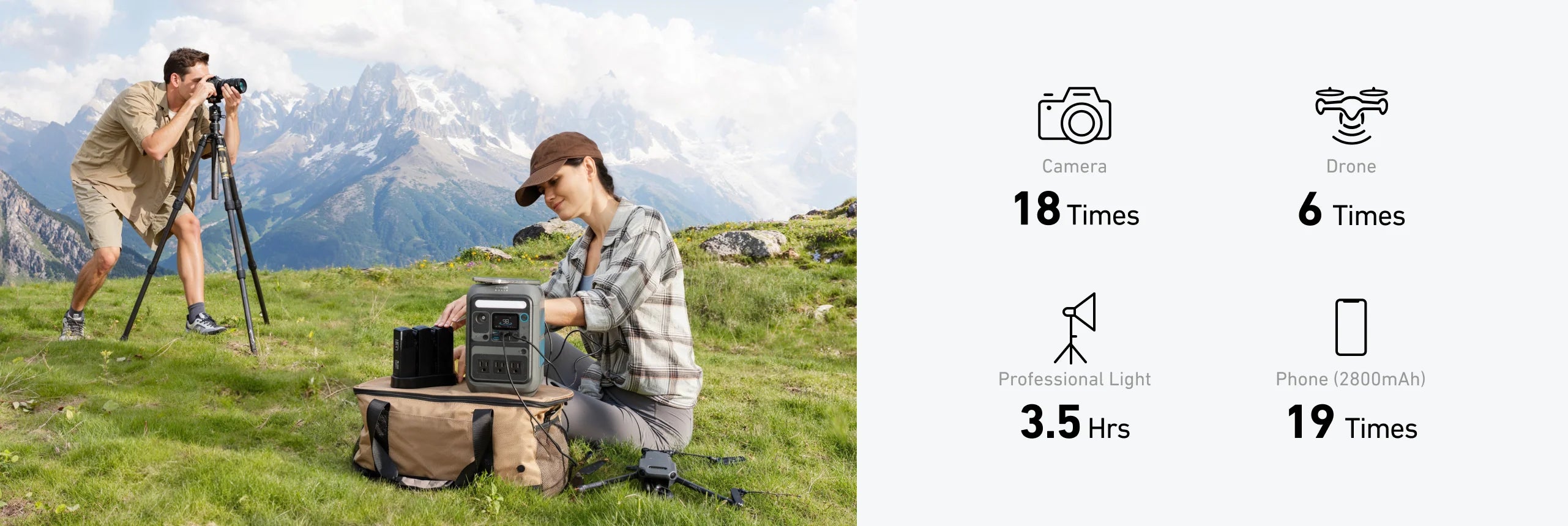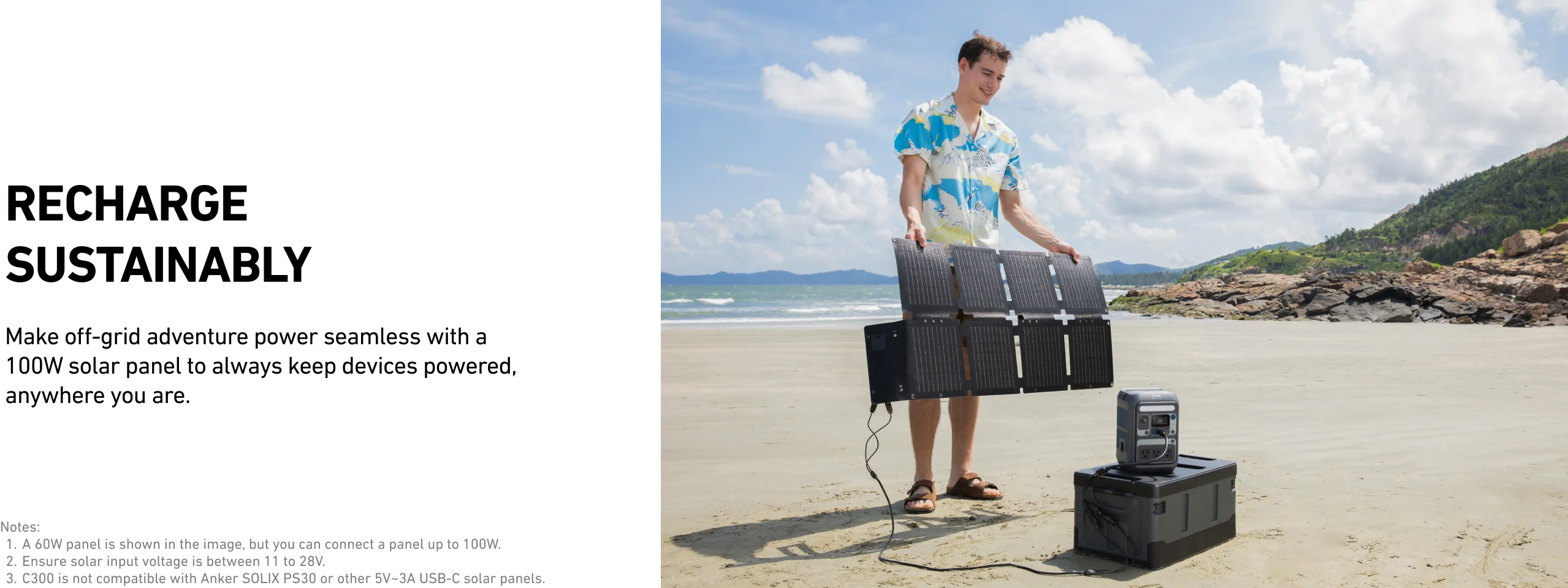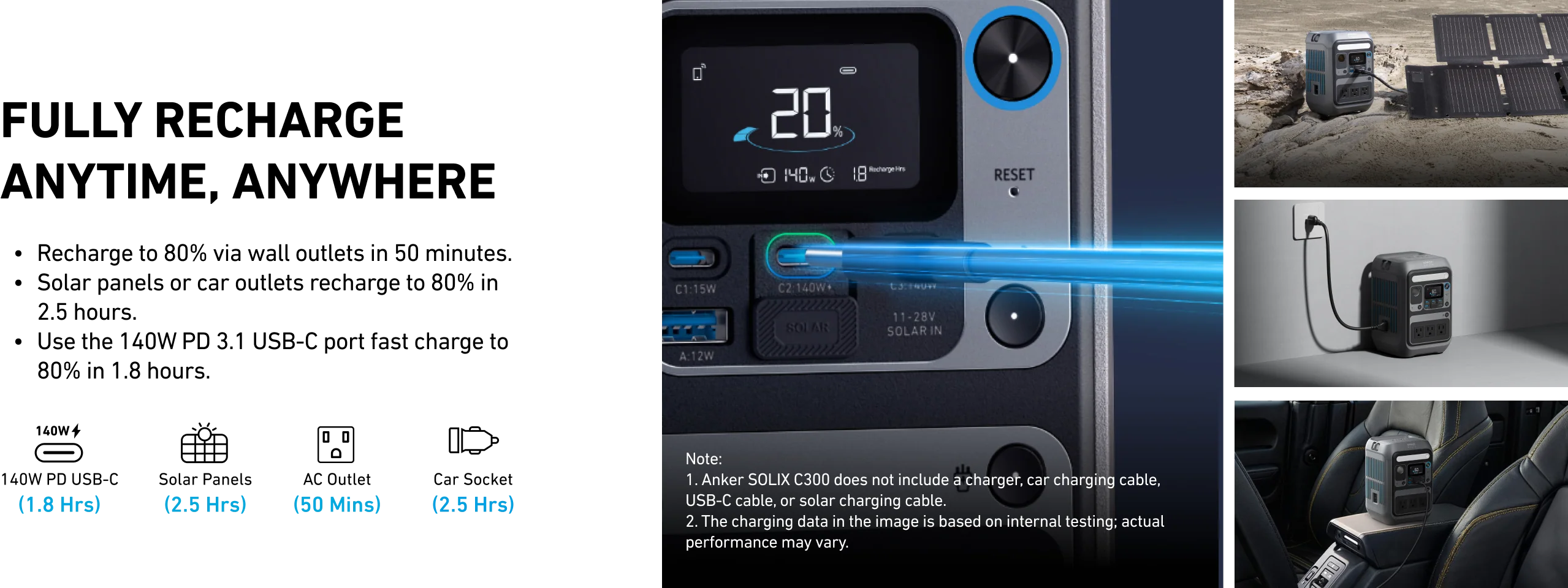 Recharge your way, anywhere: Top up via wall outlet, car, compatible solar panels, or USB-C PD.